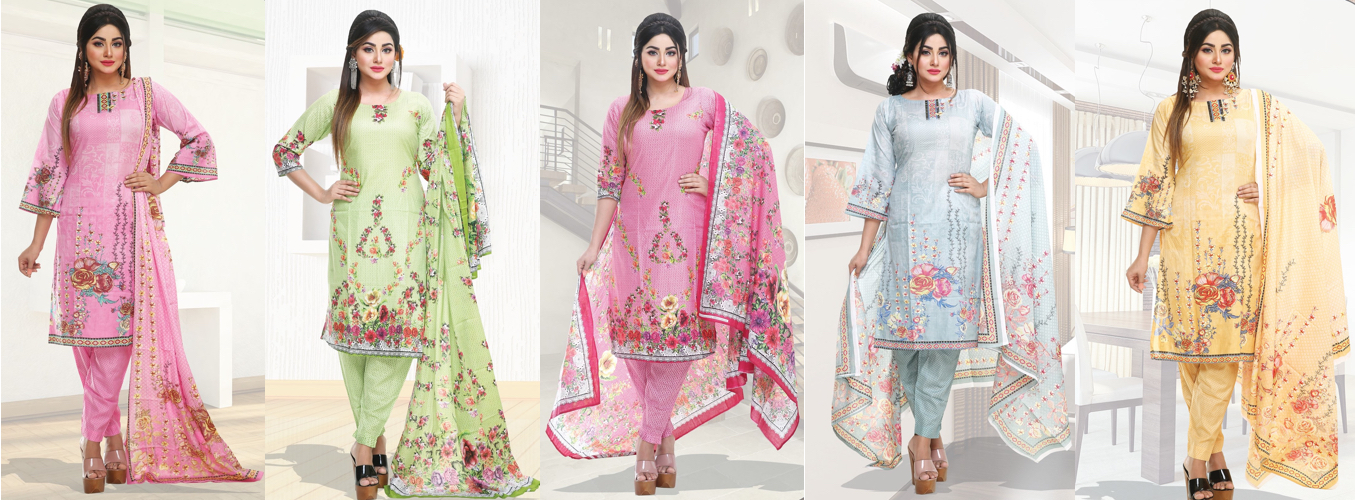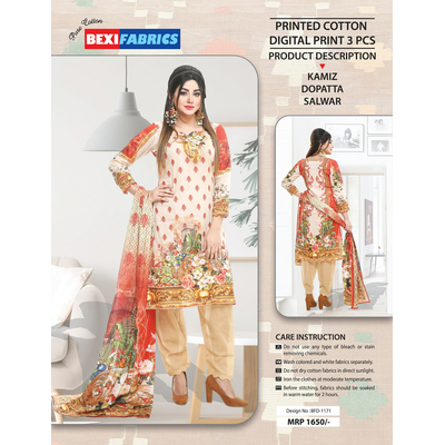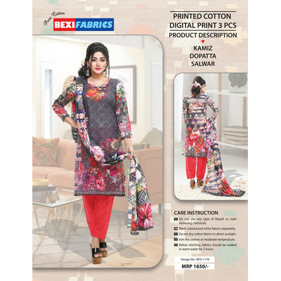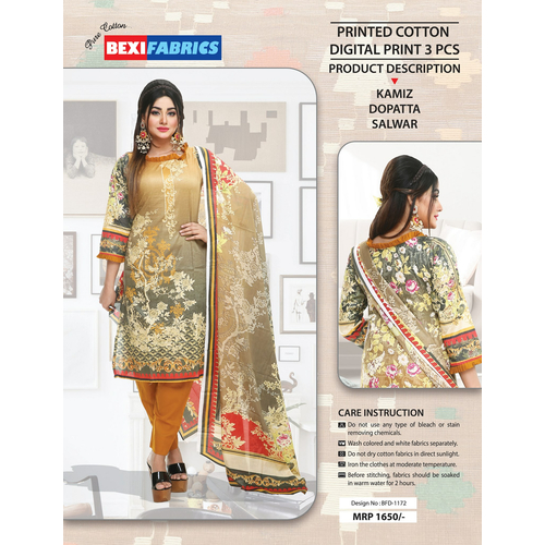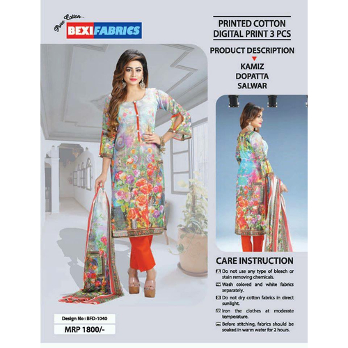 Multi Bexi Digital Printed Cotton Three Piece - মালটি কালার বেক্সি ডিজিটাল প্রিন্ট কটন থ্রিপিস