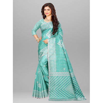 Turquoise Lovely Hater Kaj Saree - ফিরোজা লাভলি হাতের কাজ শাড়ি