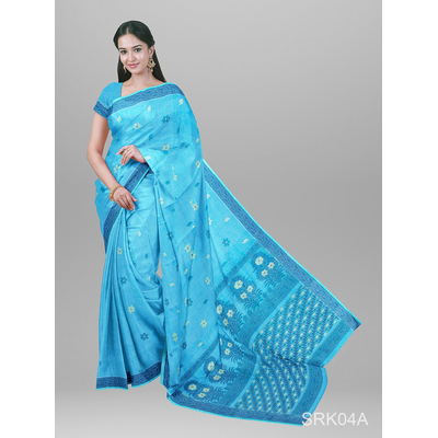 Medium Blue Hater Kag Saree - নীল হাতের কাজ শাড়ি