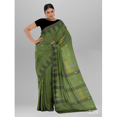 Green & Black Jamdani Saree - সবুজ এবং কালো জামদানি শাড়ি