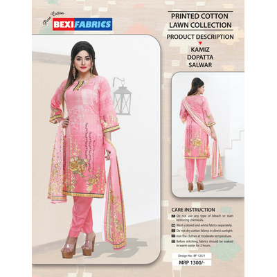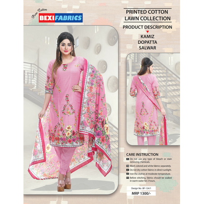 Carnation Pink Bexi Digital Fabrics Lawn Cotton Three Piece - কার্নেশন গোলাপীকালার বেক্সি ডিজিটাল প্রিন্ট কটন থ্রিপিস