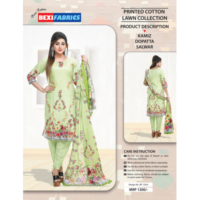 Pistachio Green Bexi Digital Fabrics Lawn Cotton Three Piece - পেস্তা সবুজ কালার বেক্সি ডিজিটাল প্রিন্ট কটন থ্রিপিস