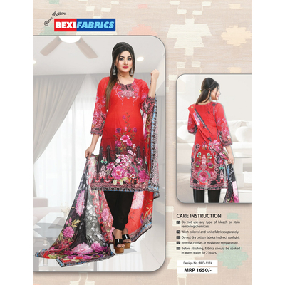 Red Bexi Digital Printed Cotton Three Piece - লাল কালার বেক্সি ডিজিটাল প্রিন্ট কটন থ্রিপিস