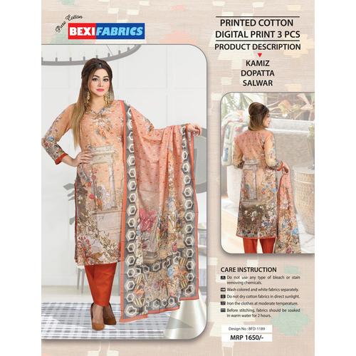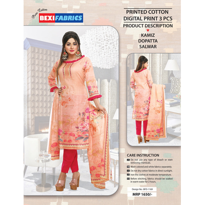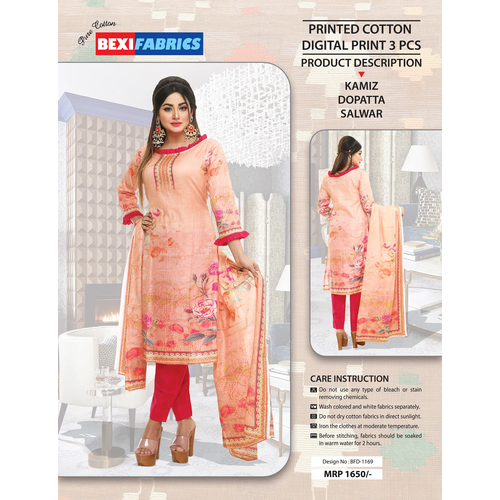 LightSalmon Bexi Digital Printed Cotton Three Piece - লাইট সেলমন কালার বেক্সি ডিজিটাল প্রিন্ট কটন থ্রিপিস