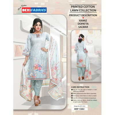Blue Turquoise Bexi Digital Printed Cotton Lawn Three Piece - নীল ফিরোজা কালার বেক্সি ডিজিটাল প্রিন্ট কটন থ্রিপিস