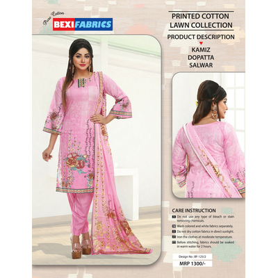 Bashful Pink Bexi Digital Printed Cotton Lawn Three Piece - বাশফুল গোলাপী কালার বেক্সি ডিজিটাল প্রিন্ট কটন থ্রিপিস