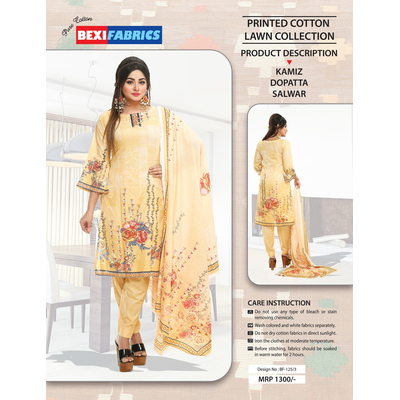 Parchment Bexi Digital Printed Cotton Lawn Three Piece - পার্চমেন্ট কালার বেক্সি ডিজিটাল প্রিন্ট কটন থ্রিপিস
