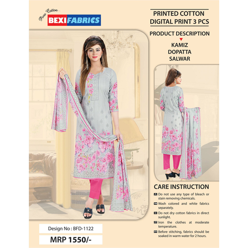 Silver Pink Bexi Digital Printed Cotton Three Piece - সিলভার গোলাপি কালার বেক্সি ডিজিটাল প্রিন্ট কটন থ্রিপিস