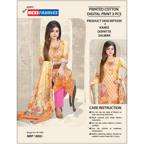 Saffron Bexi Digital Printed Cotton Three Piece - সাফরন কালার বেক্সি ডিজিটাল প্রিন্ট কটন থ্রিপিস