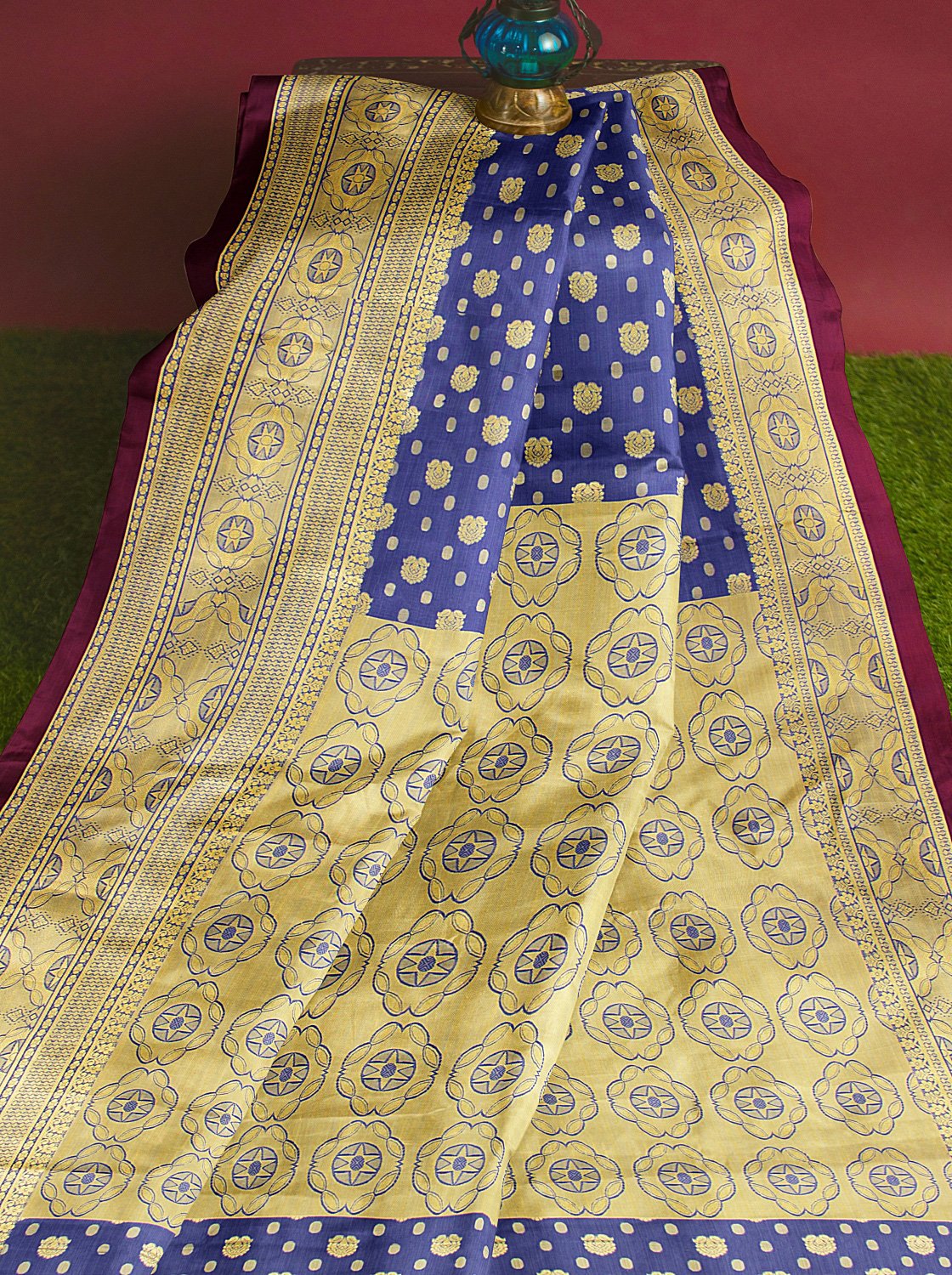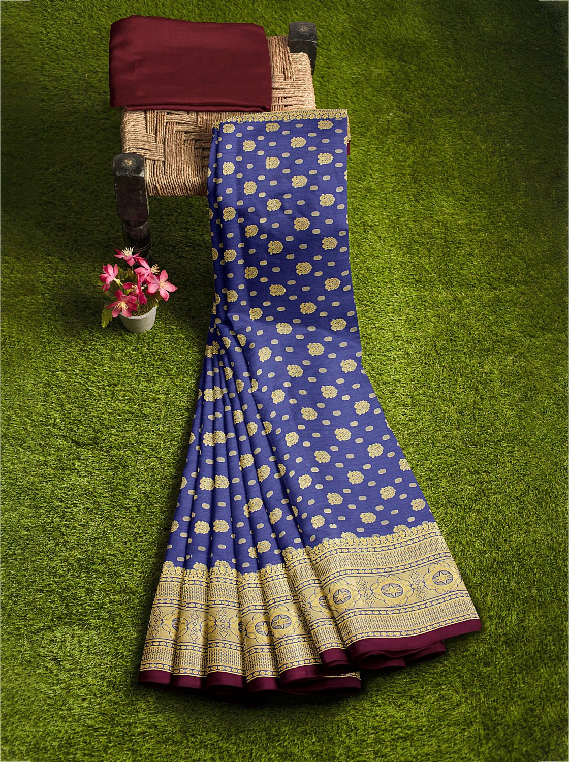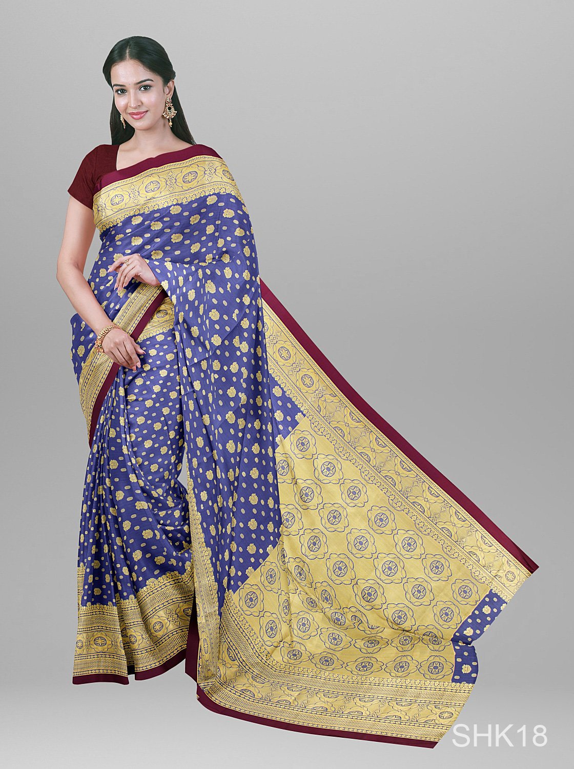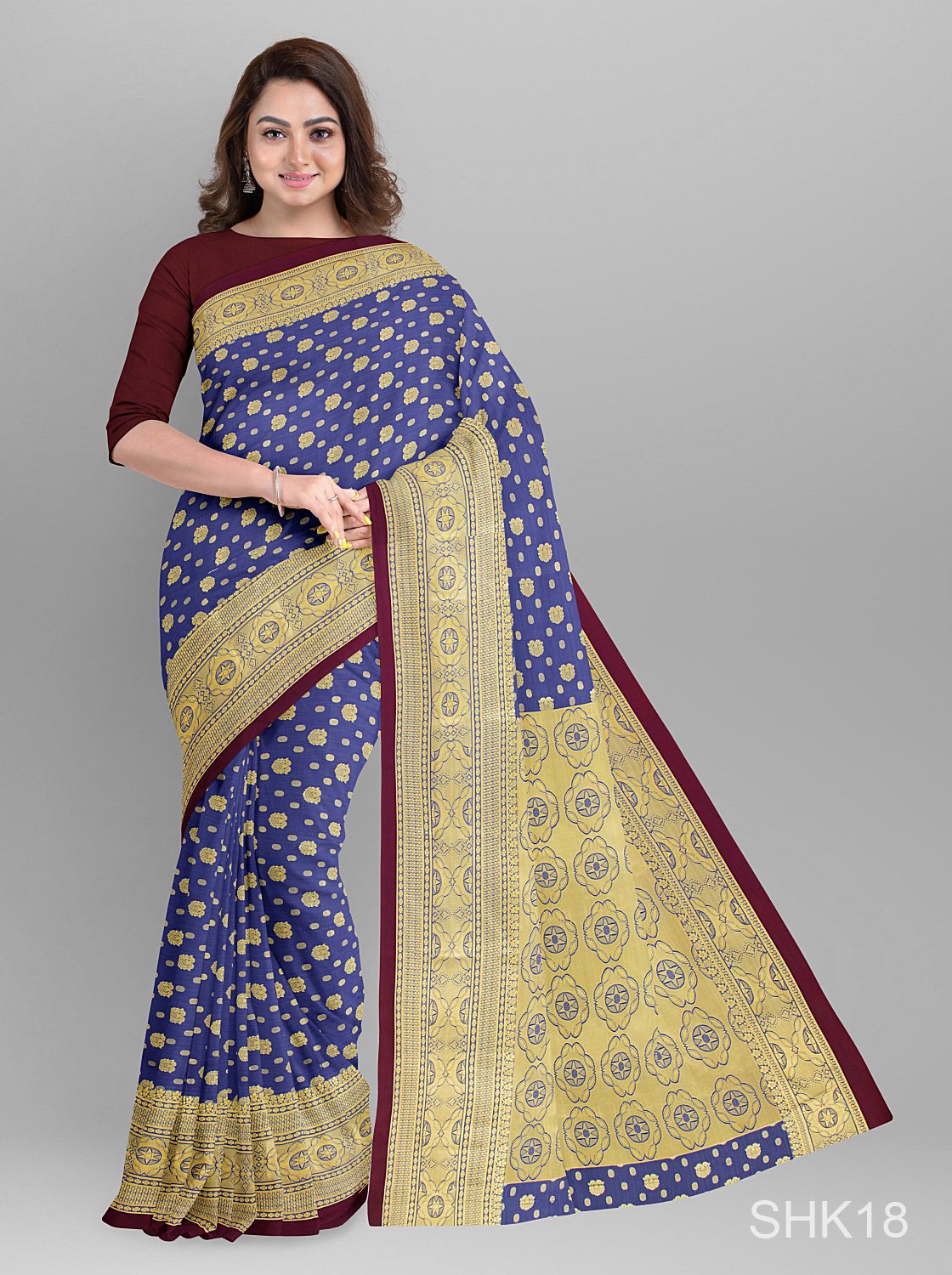 Dark Blue Slik Saree - লাইট নীল সিল্ক শাড়ি