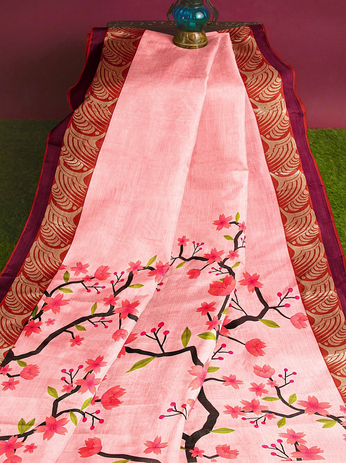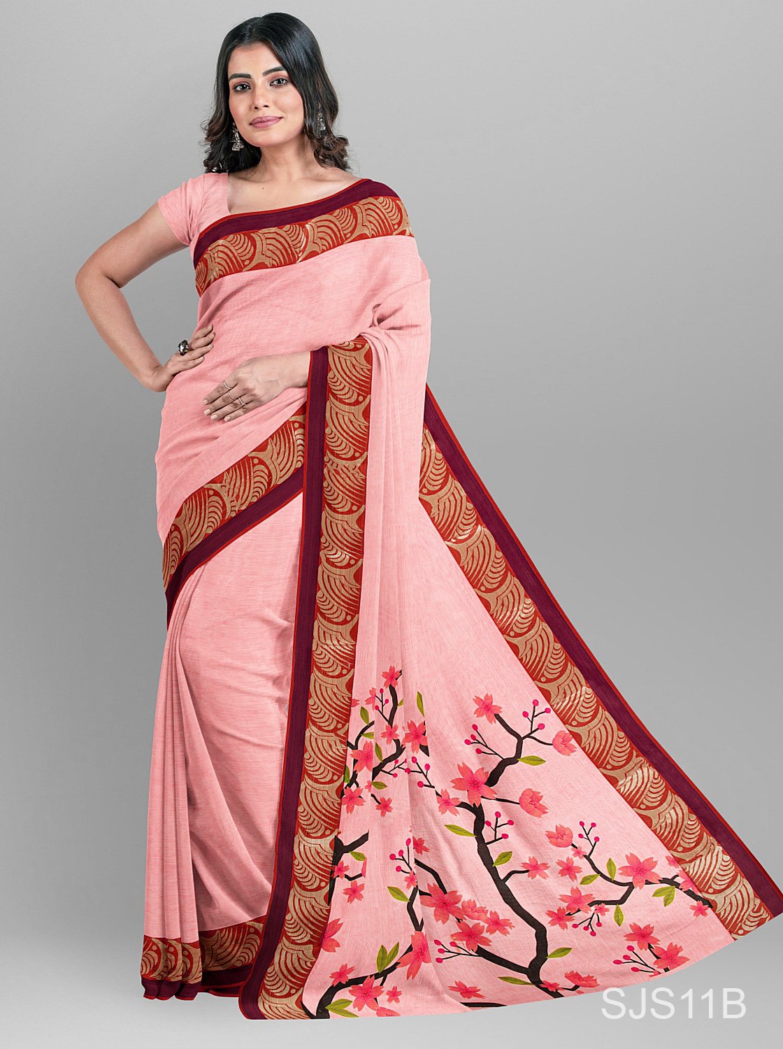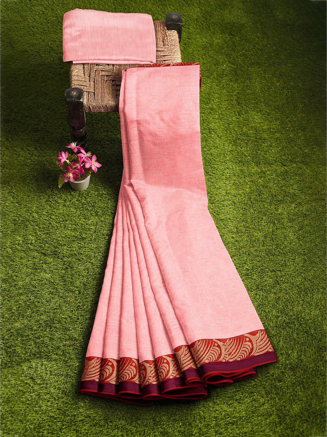 Light Pink Slik Saree - লাইট গোলাপি সিল্ক শাড়ি