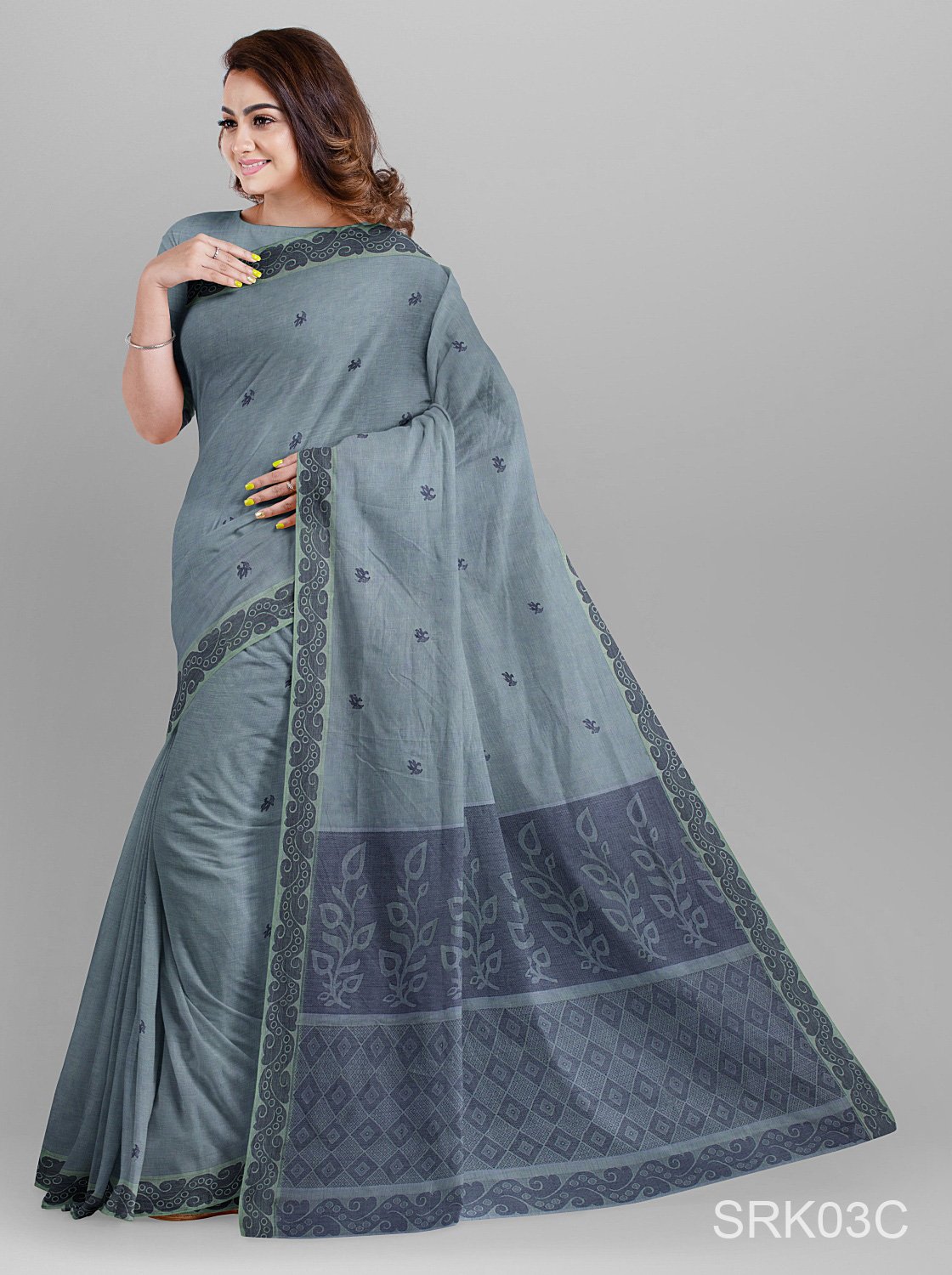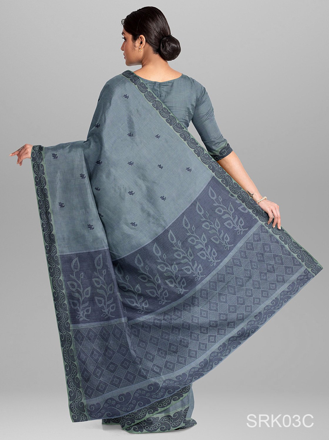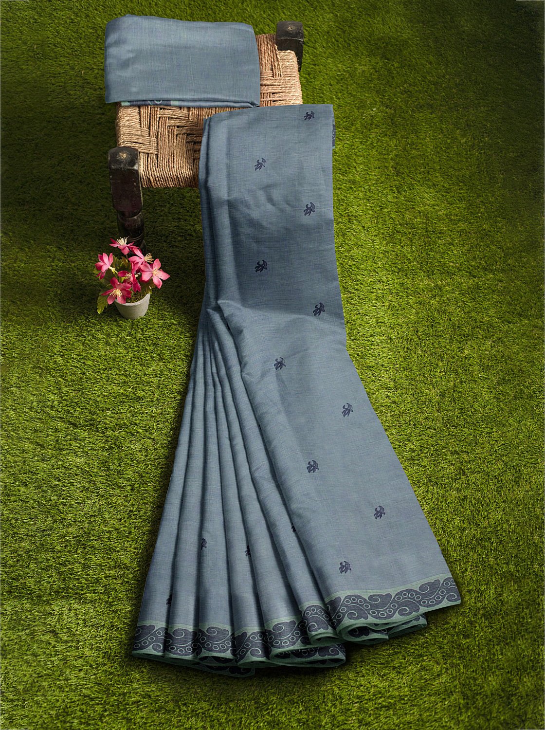 Light Steel Blue Hater Kager Saree - নীল হাতের কাজ শাড়ি