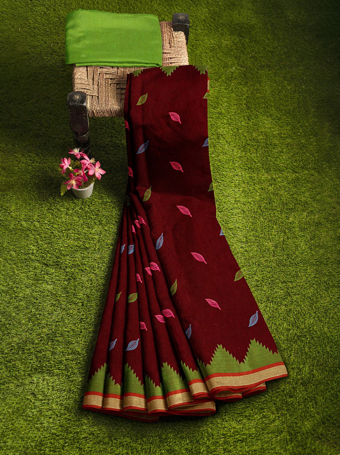 Maroon Suti Saree- মেরুন সুতি শাড়ি