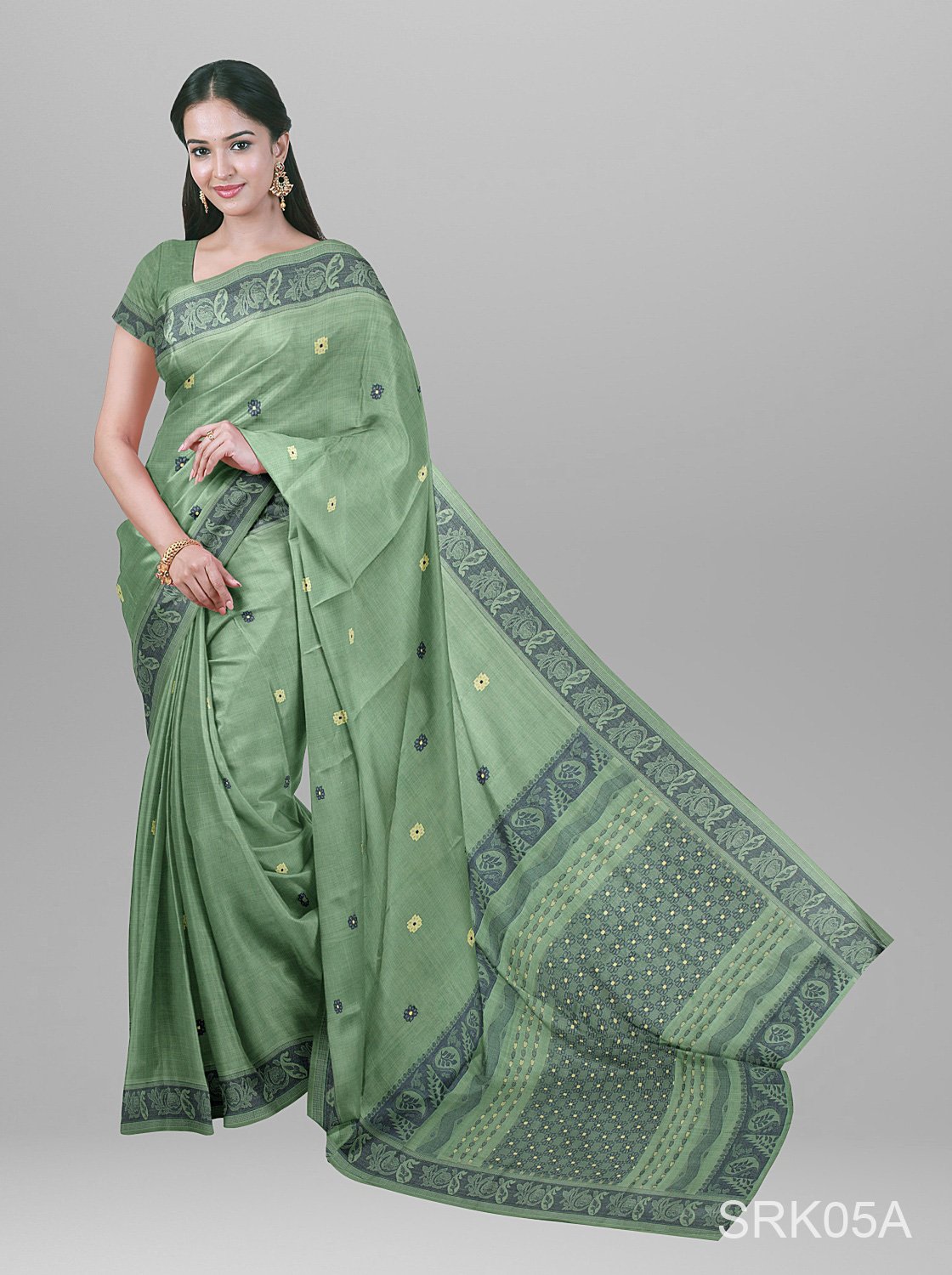 Medium See green Hater kag Saree - ধূসর সবুজ হাতের কাজের শাড়ি