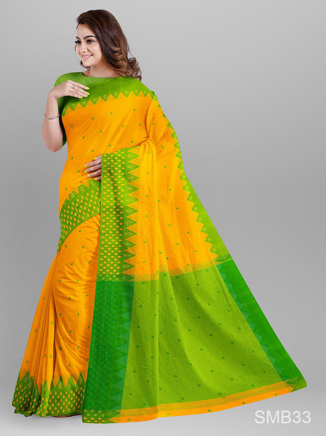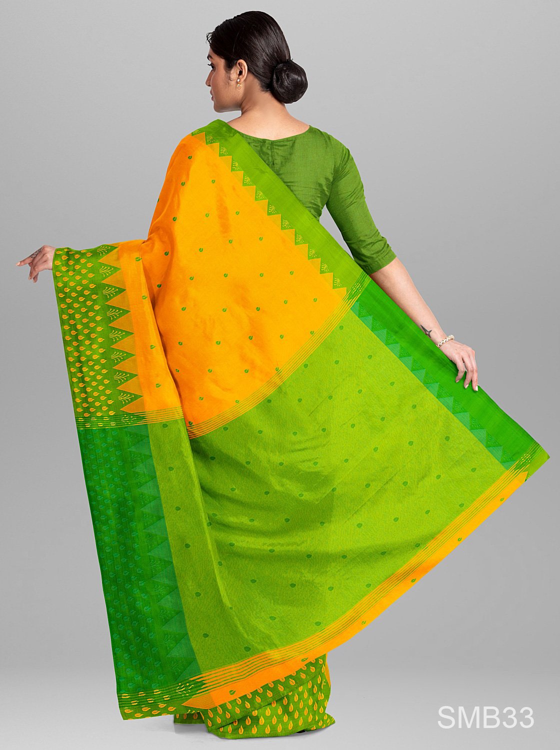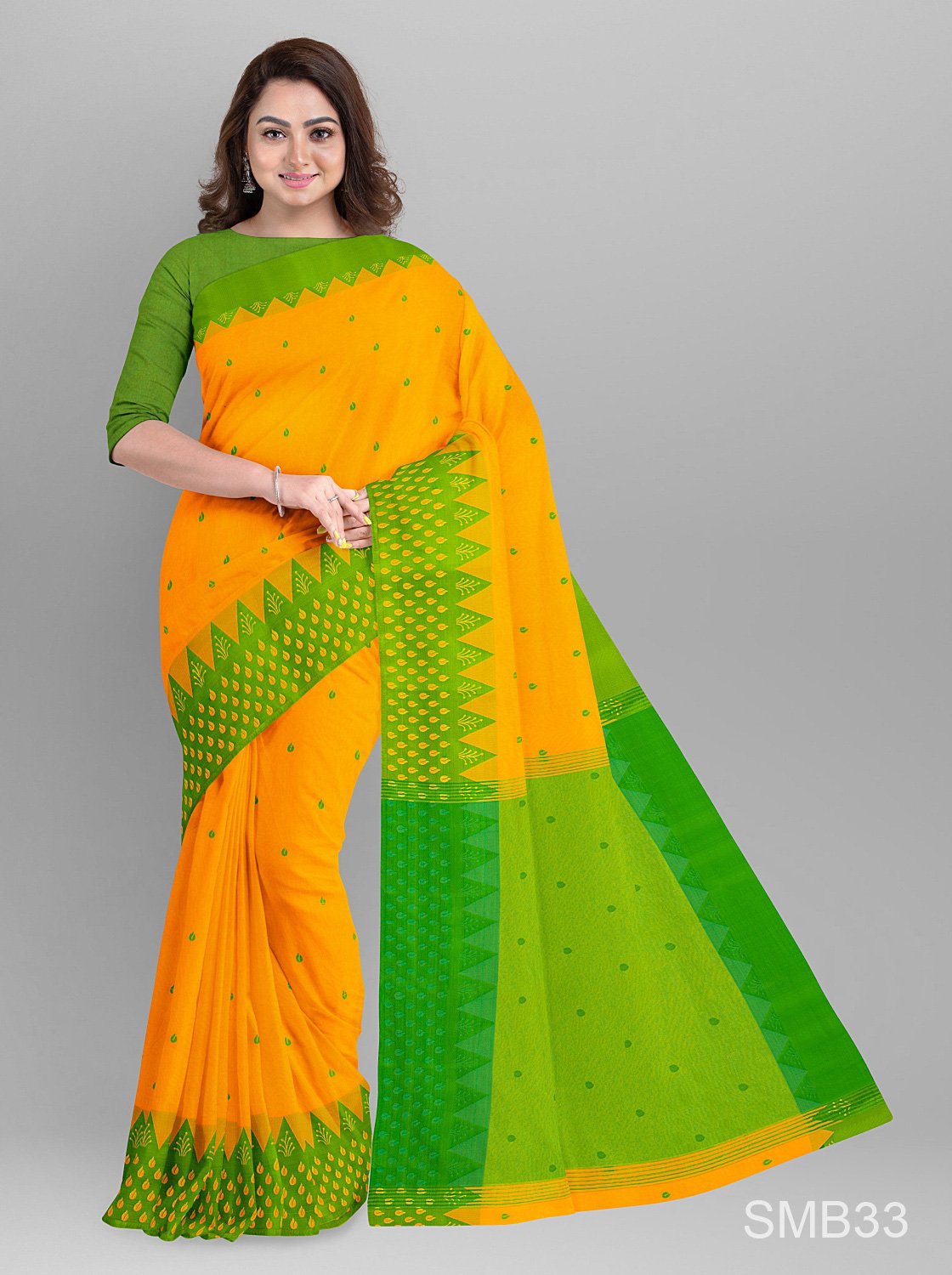 Orange & Green Suti Saree - কমলা এবং সবুজ সুতি শাড়ি