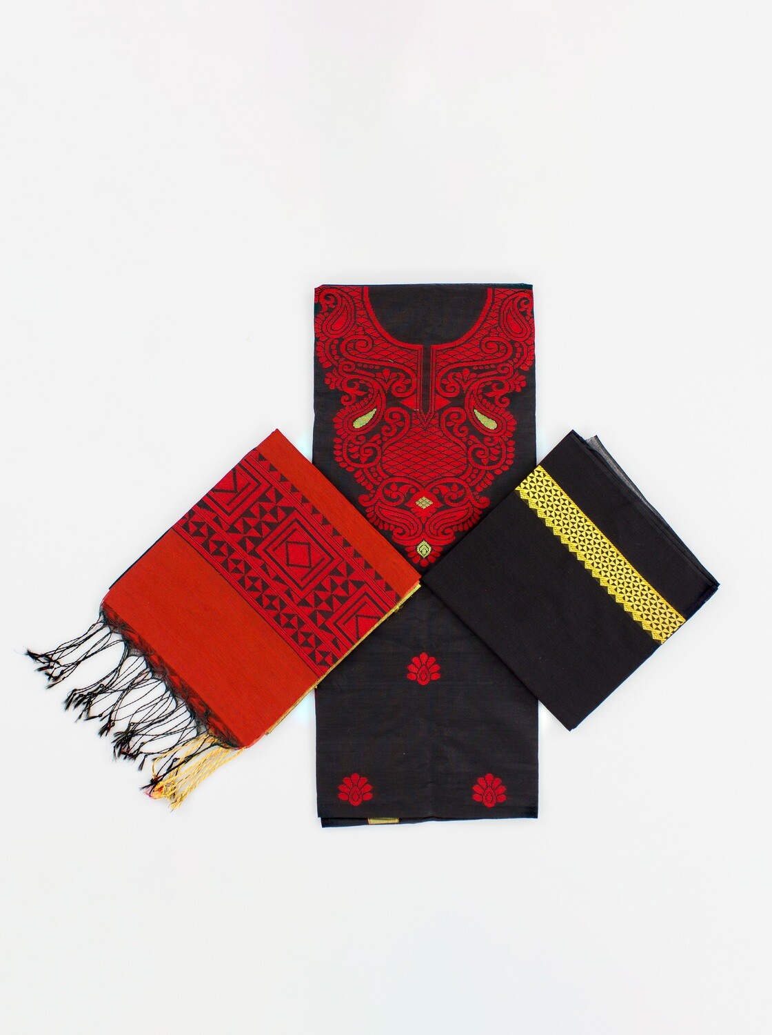 | হাতের কাপড় | থ্রি-পিসটির সাথে হাতের কাপড় দেওয়া আছে। |