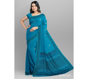 Turquoise Porosh Hater Kaj Saree - ফিরোজা পরস হাতের কাজ শাড়ি