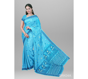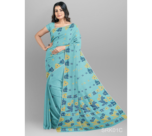 Turquoise Lovely Hater Kaj Saree - ফিরোজা লাভলি হাতের কাজ শাড়ি
