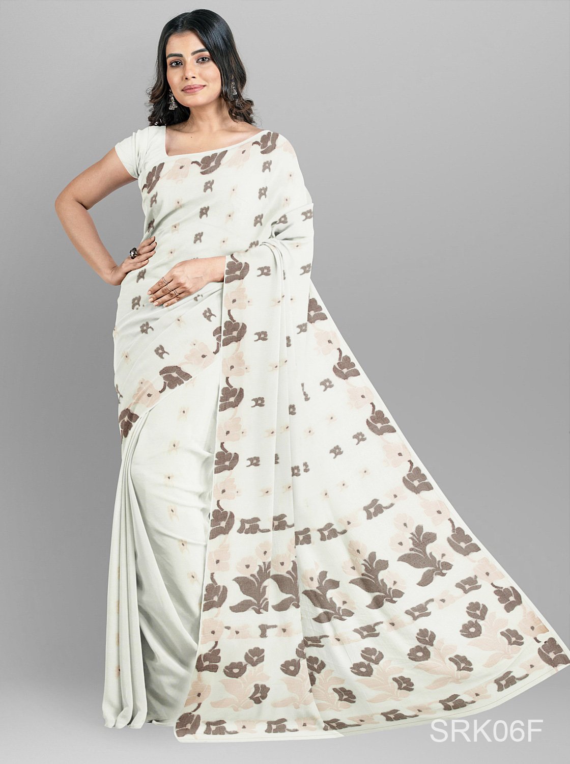 White Hater Kag Saree- সাদা হাতের কাজ শাড়ি